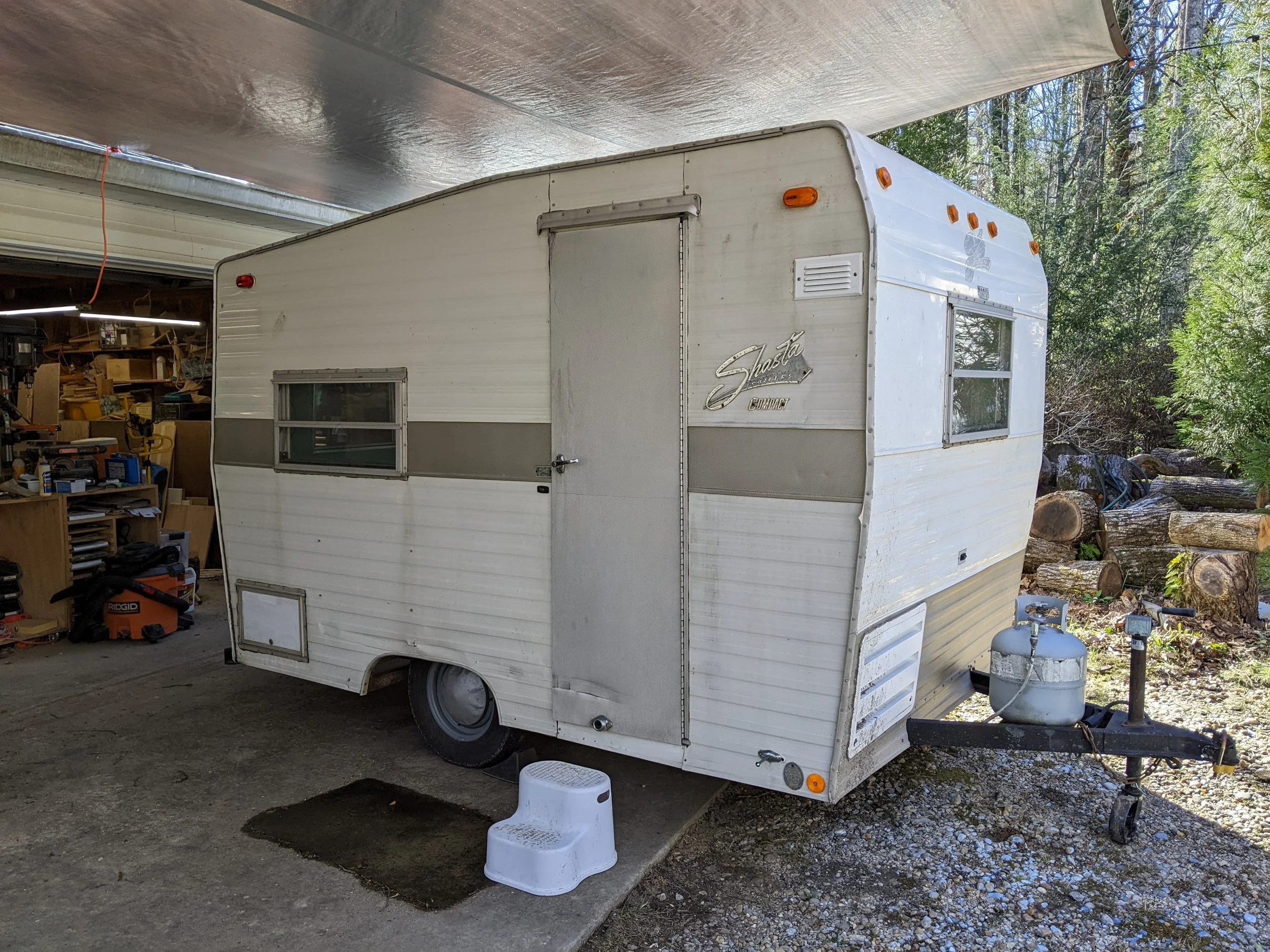 “We found our 1972 Shasta Compact trailer in 2013. We had a small amount of work done on it to make it functional for us. We loved the original trim and had a great time using it for short trips but it had some serious limitations. We kept it outside, uncovered as it had probably been for the better part of its previous 40 years of existence. In 2023 we made a decision to have it renovated rather than purchasing a new camper. Our first goal was to ensure that it was structurally sound for longer trips. We also wanted to make it more comfortable and add more modern capabilities.